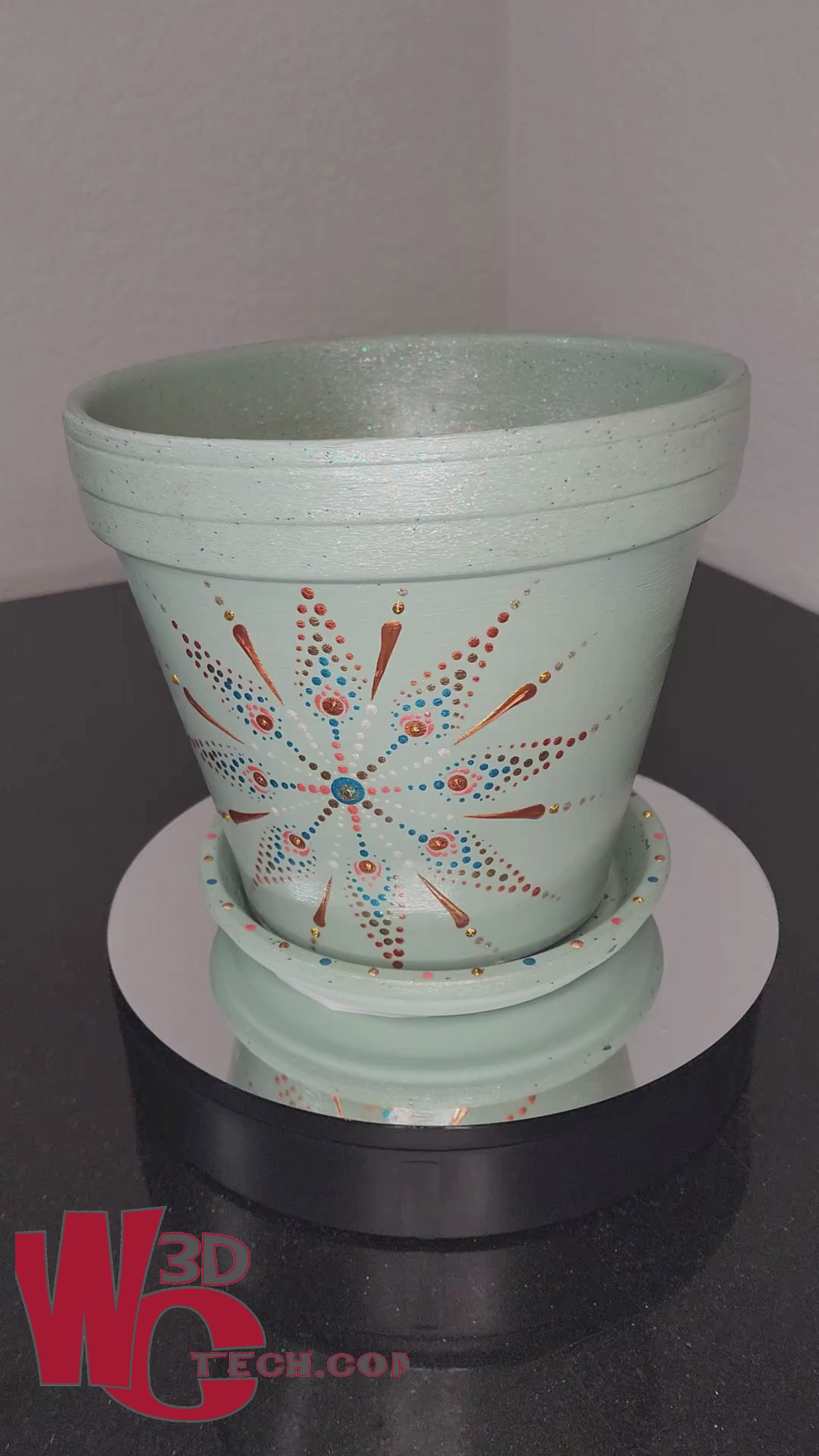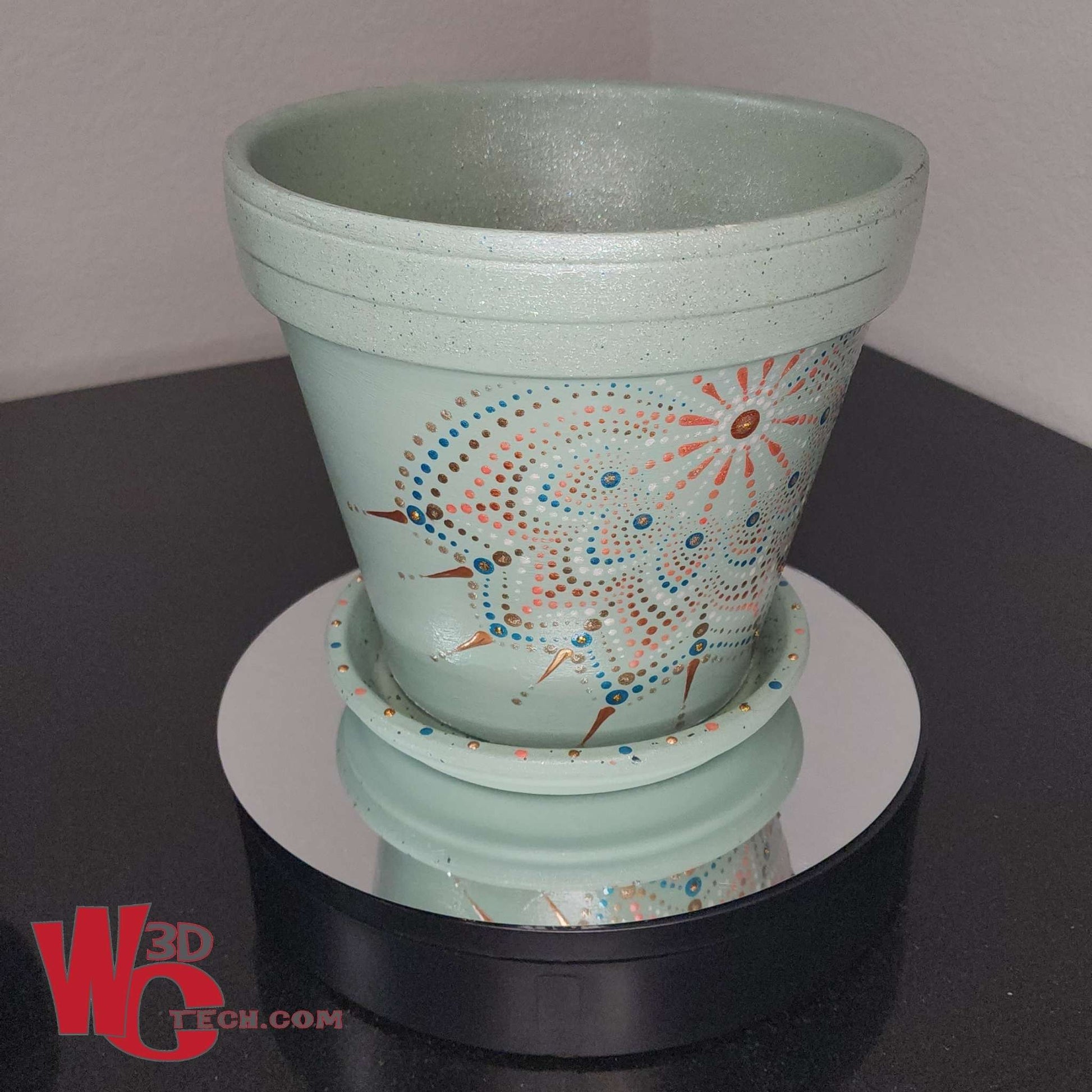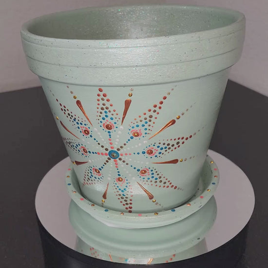 Agave Star 10" Hand Painted Mandala Terracotta Flower Pot w/Saucer
