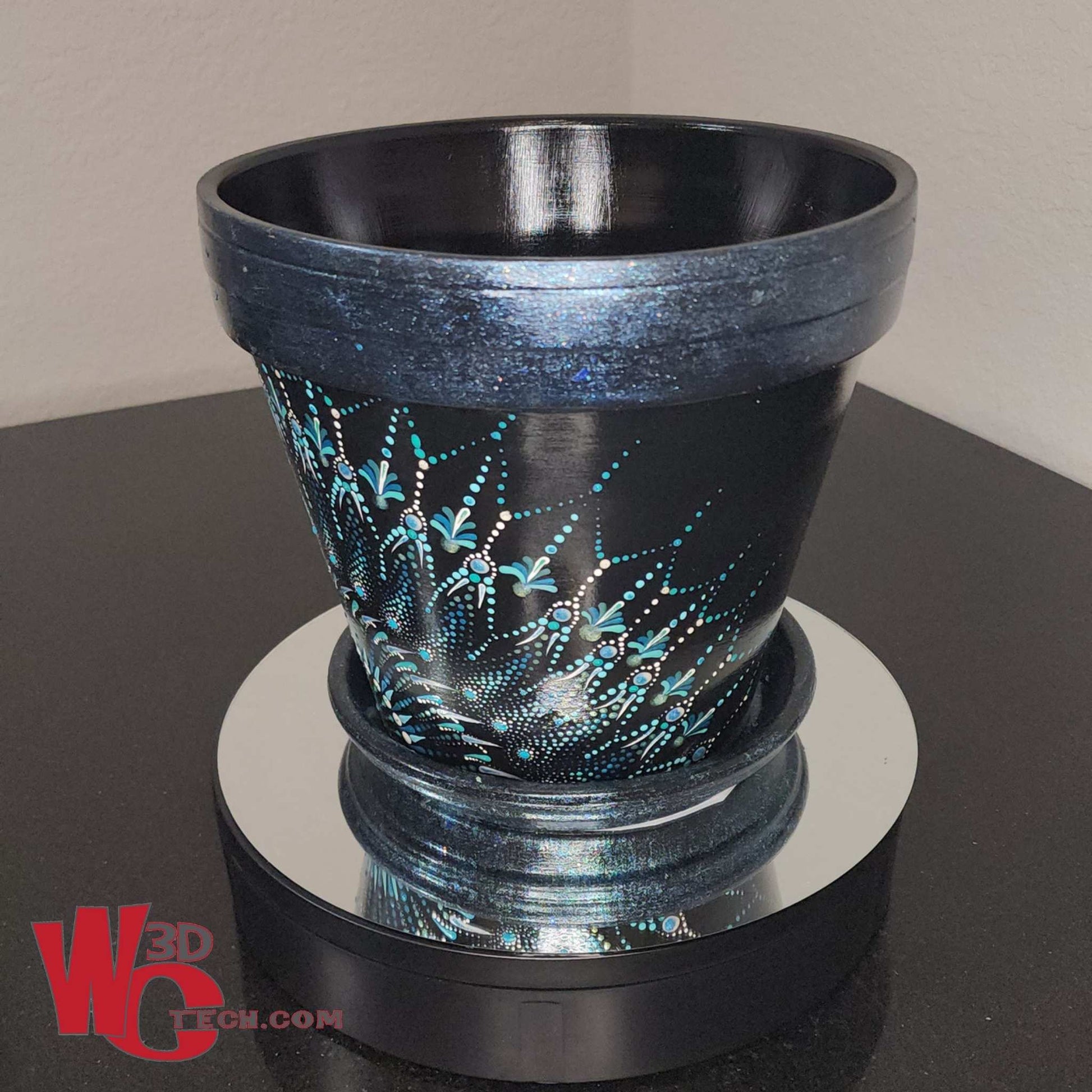 Black Sapphire 10" Hand Painted Mandala Terracotta Flower Pot w/Saucer